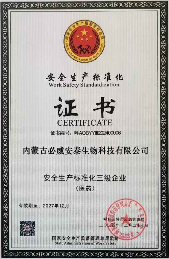 內(nèi)蒙古必威安泰生物科技有限公司成立于2008年6月,位于呼和浩特市和林格爾乳業(yè)開發(fā)區(qū),占地123畝,注冊資本1.25億元。公司專注于生物疫苗研發(fā)生產(chǎn),是原農(nóng)業(yè)部批準(zhǔn)的首家采用細(xì)胞懸浮培養(yǎng)技術(shù)生產(chǎn)口蹄疫疫苗的企業(yè),擁有兩條7550升德國進(jìn)口懸浮培養(yǎng)生產(chǎn)線,年產(chǎn)能20億毫升,覆蓋多種動物疫苗。公司被認(rèn)定為自治區(qū)“企業(yè)研發(fā)中心"“重點(diǎn)龍頭企業(yè)單位”“企業(yè)技術(shù)中心"和國家"高新技術(shù)企業(yè)”,“口蹄疫基因標(biāo)記疫苗”獲全國商業(yè)科技進(jìn)步一等獎。2024年,瑞普生物控股后,公司構(gòu)建全生命周期質(zhì)量管控體系,獲多項國際權(quán)威認(rèn)證,包括ISO9001、ISO14001、ISO45001、ISO5001及獸藥GMP、CNAS、GCP、GSP等。